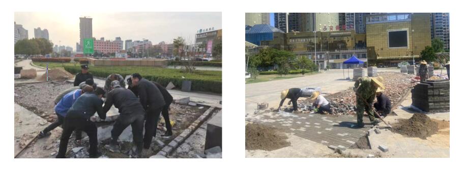 2024年4月,中泰商管團(tuán)隊(duì)決定對廣場上影響活動開展、破損嚴(yán)重的地面進(jìn)行整修;對漏水的四個(gè)水池拆除;對廣場噴泉修復(fù),整改面積約700平方米。這些維修改造工作沒有通過外部工程隊(duì)伍施工,都是潘鴻生總經(jīng)理帶領(lǐng)全體同志完成。他們冒酷暑戰(zhàn)高溫,清淤泥焊管道,鏟地面鋪電纜,細(xì)研究定方案,全天候的在廣場上,進(jìn)行一袋袋水泥的傾倒、一鍬鍬黃沙的攪拌、一塊塊地磚的鋪裝、一節(jié)節(jié)管道的修復(fù),歷時(shí)3個(gè)月全面完工,中泰廣場恢復(fù)往昔的靈動與活力,公司也節(jié)省了大筆費(fèi)用支出。
