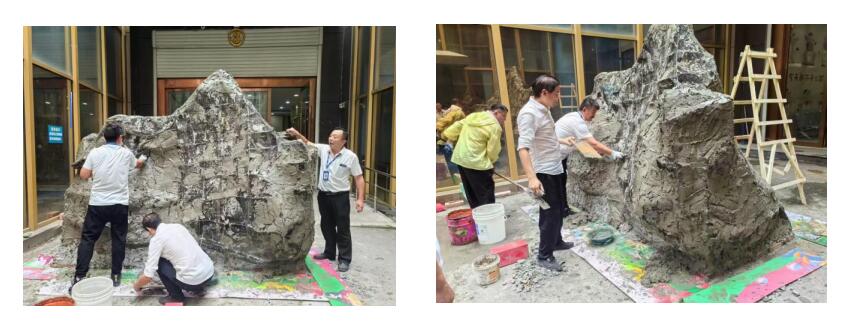 2024年6月,中泰商管團(tuán)隊(duì)在雕塑老師的指導(dǎo)下,公司自己買物料、自己焊接假山骨架,配合老師打磨修改,一座形象逼真的假山很快就屹立在商場3號門外,為公司節(jié)約了開支,又增添了文化氛圍。