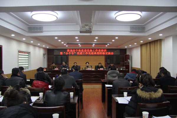 2017年1月12日下午,淮北市個私黨委召開了黨務(wù)工作者培訓(xùn)暨先進典型經(jīng)驗交流會。市工商局程春芳副局長、市個私黨委委員、紀(jì)檢委員、天象集團黨委副書記王安惠以及集團下屬4個黨支部的黨務(wù)工作者共計50余人參加了培訓(xùn)會議。