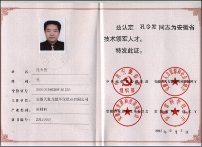 2012年孔董事長獲評(píng)安徽省技術(shù)領(lǐng)軍人才